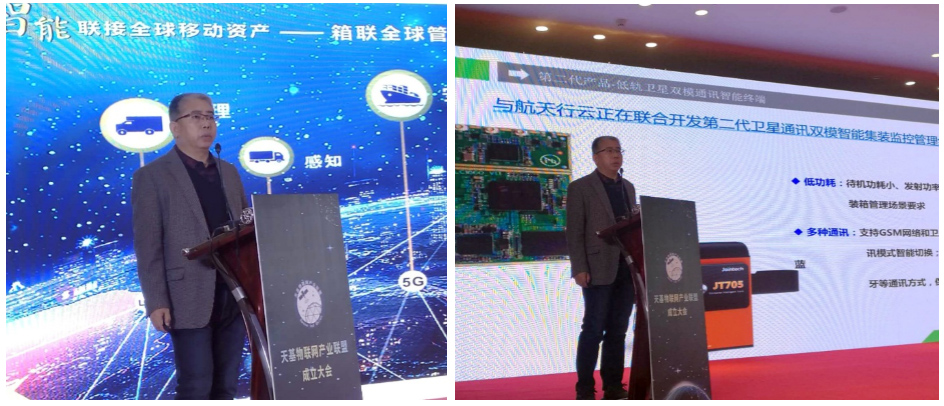 久通物联董事长陈遵炎分享了以 “天基物联网在集装箱管理领域的应用” 为主题的演讲,汇报了目前久通物联集装箱智能终端在集装箱领域的使用情况。久通物联将在全系列集装箱智能硬件中采用航天行云卫星通讯模块,以覆盖不同的使用场景,实现链接传输全球覆盖,特别是海洋、岛屿、沙漠等其它网络覆盖不到的区域。集装箱全球运输将实现全程监控,提升移动资产管理效率和水平。